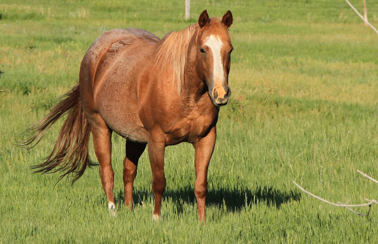 Dosey is a gentle, athletic individual with extra roan color and a sharp mind. She is cowy and well broke to ride, and has been in our broodmare band for a little more than a decade. Her babies come with her mind and strong genetics- you can pick them out of the pasture by their resemblance!