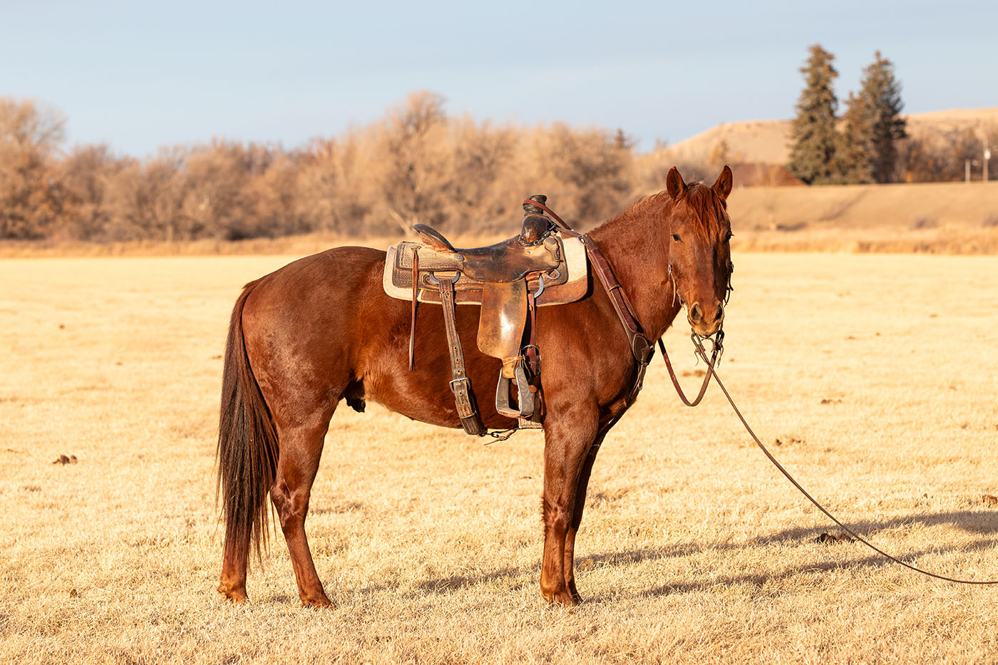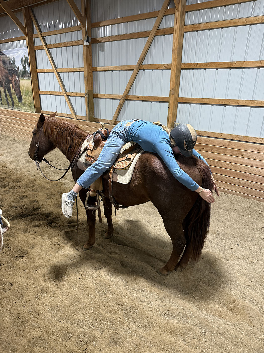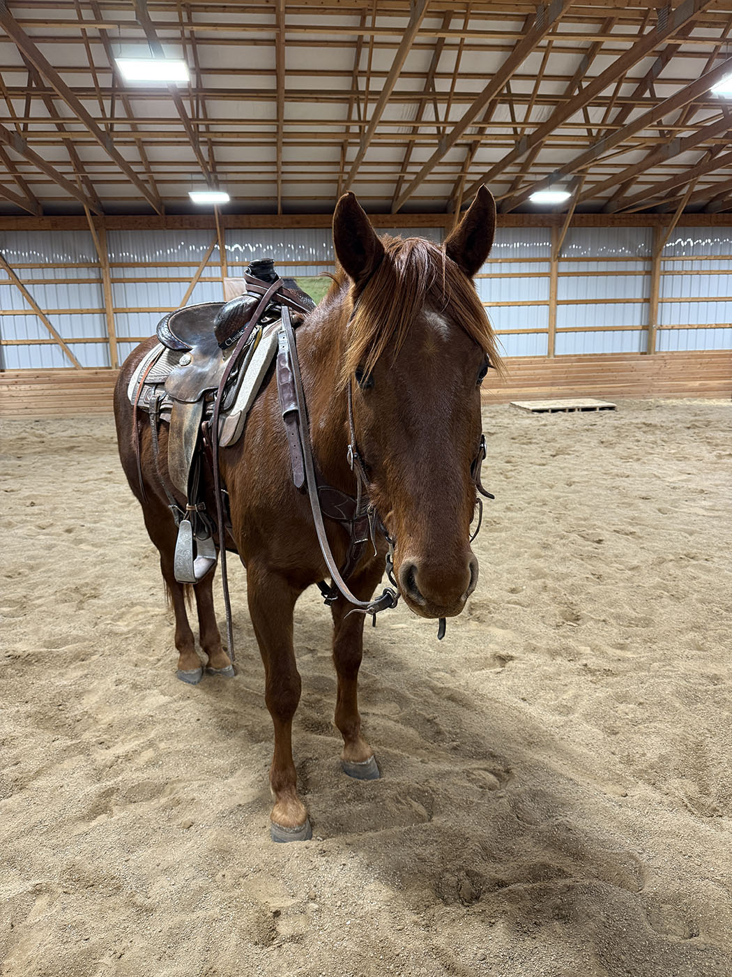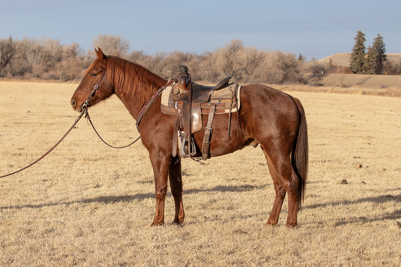 Enzo is a solidly built, solid-minded gelding with a gentle, quiet, and user-friendly personality. He has been ridden both Western and English and stepped seamlessly into the role of a safe, steady lesson horse this year. Naturally cowy and handy when asked, he stays soft, consistent, and willing in whatever job he’s given. He has been lightly started roping and loves tracking steers! He could make a really solid and fun breakaway horse with more time under his belt! Outside the arena, he’s just as dependable — happy to ride out alone or in a group and content being left behind. He absolutely loves climbing mountains and heading out on adventures, confidently navigating rough country with a curious, bold mindset while staying level-headed and trustworthy. In the barn, Enzo’s goofy, puppy-dog personality makes him extra lovable and fun to be around and he’s a favorite with everyone who meets him! He loves playing games with his riders and doesn’t mind having to pack around pool noodles, tarps or flags. Catching Enzo is a breeze as he will practically catch himself and will happily carry you to the barn bareback in a halter. His nice, smaller size makes him an ideal fit for a 4-H rider looking for a step-up, confidence-boosting partner or the rancher wantinga gentle, handy little ranch horse! Ridden by Jessie Cloutier. FMI [email protected] or 307-298-5030.