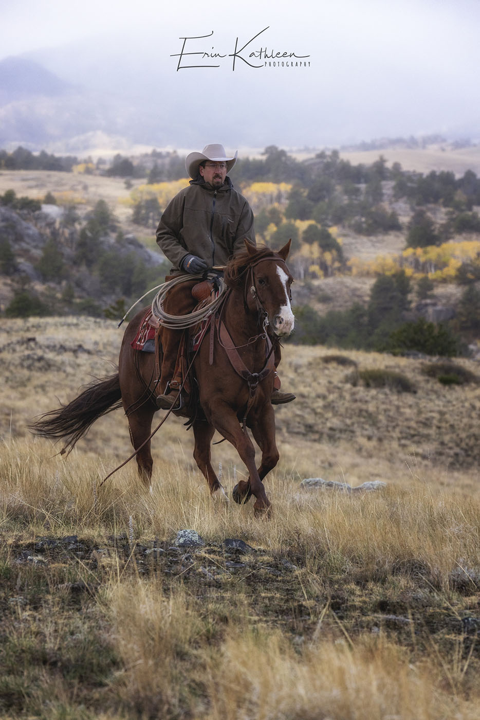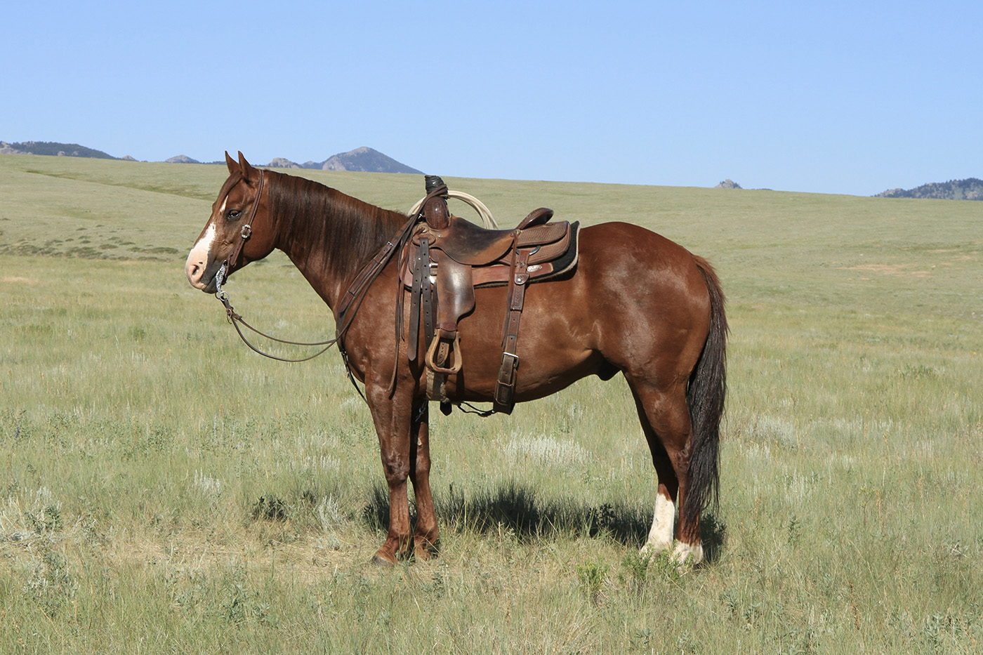 Tested, solid and with an extra touch of old-school style, Hickory is a ranch horse with that next-level of class to him. I immediately picked this guy out as the perfect blend of “cow horse meets ranch horse” and he has shown himself to be all that. He keeps a level head and gets his job done without complaint or drama. Ride out alone or with a group, every day or intermittently, he’s cool with whatever. He tracks a cow like a pro, and really comes around on one in the alley! He’s been roped off of a bunch and will be in the branding pen this spring. I also used him to snub a stubborn colt where he was unfazed by the baby’s tantrums and handled the whole thing like a professional. He’s accustomed to our dogs running under him, and is especially kind and considerate of our young toddlers when they lead him in and out of the barn or race their bikes past him. Hickory is a smooth mover, especially at the trot- comfortable enough for my wife to ride through much of her pregnancy. He is one-handed soft and responsive and can ride up to whatever you need of him, but he’s also able to ride down to less experienced riders and give them what they need too. This is a versatile individual that we have really enjoyed riding! Ridden by Steven and Hannah Gutenberger. For more information, [email protected] or 307-298-5030.