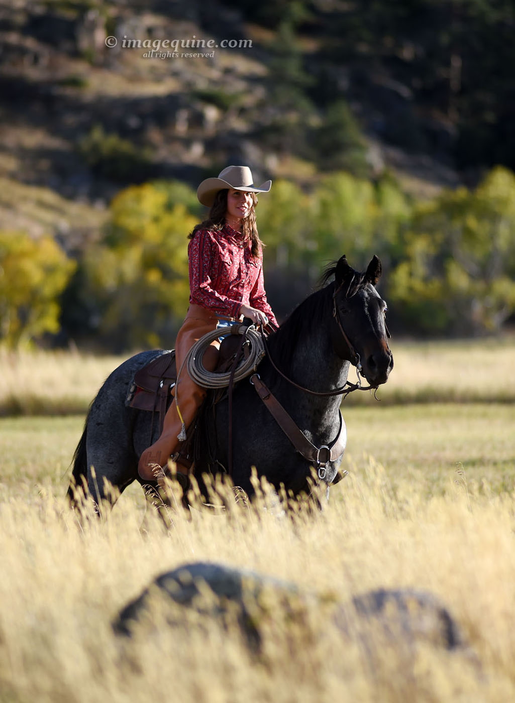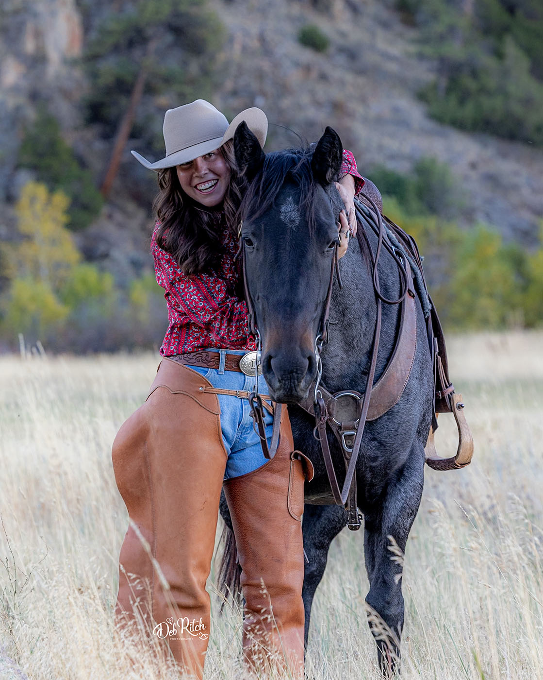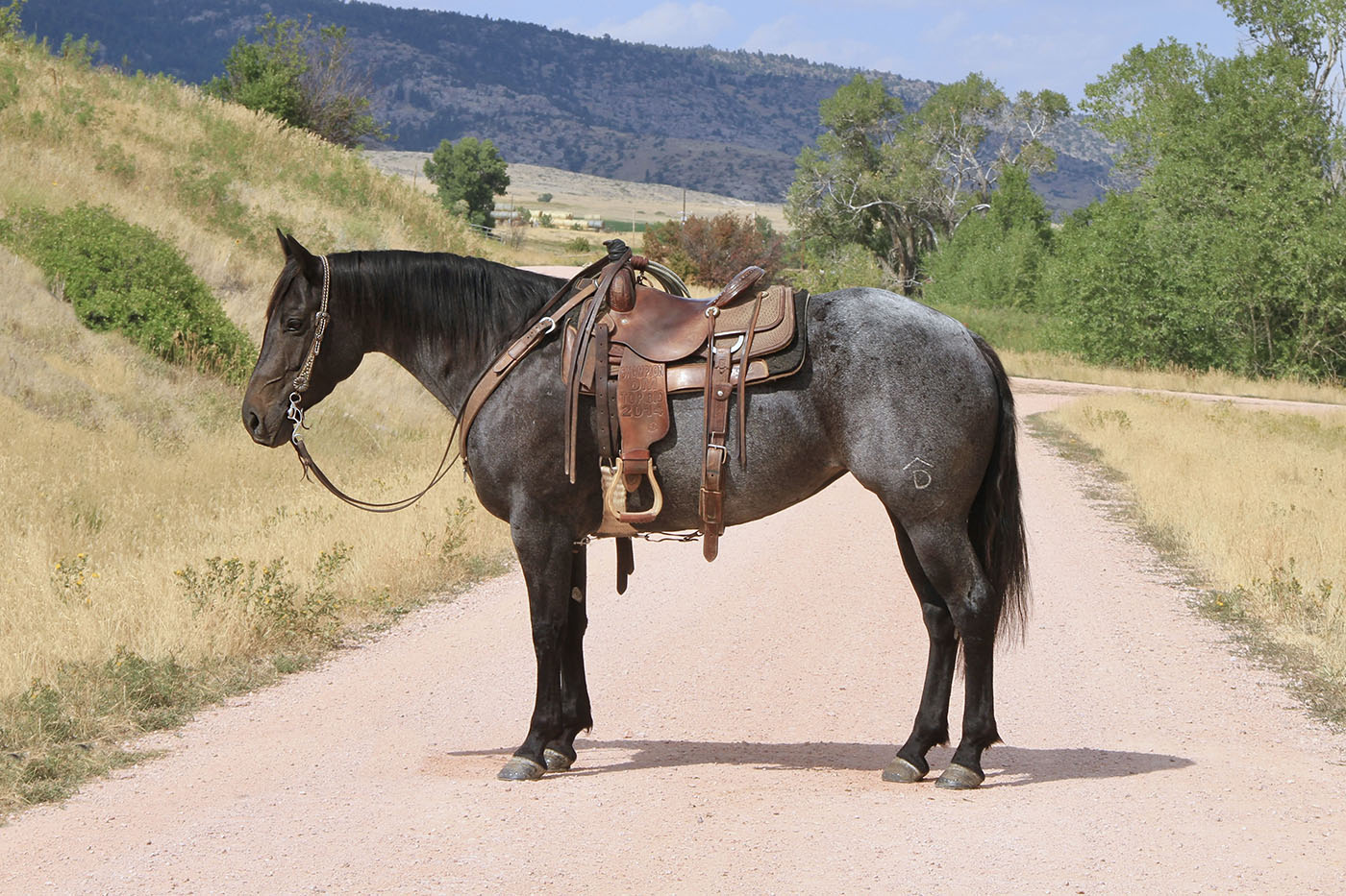 Pretty as a picture and built like a Quarter Horse should be, Prairie is a whole-family type horse in the making! We have enjoyed this girl and all she has to offer. Friendly and gentle natured, she is usually the first one to greet you in the pen. She sidepasses to the mounting block so you can step on easily, and has been ridden outside by herself as well as with buddies. I’ve climbed her up and down some super steep and rocky trails, and she’s always been surefooted and game to go where I point her! Prairie is a smooth mover, especially at the trot, and has been great with all kinds of obstacles! Even at her younger age, I don’t have to ride every day to know that she’ll stay broke. It’s just in her nature. Ridden by Hadleigh True. FMI [email protected] or 307-298-5030.