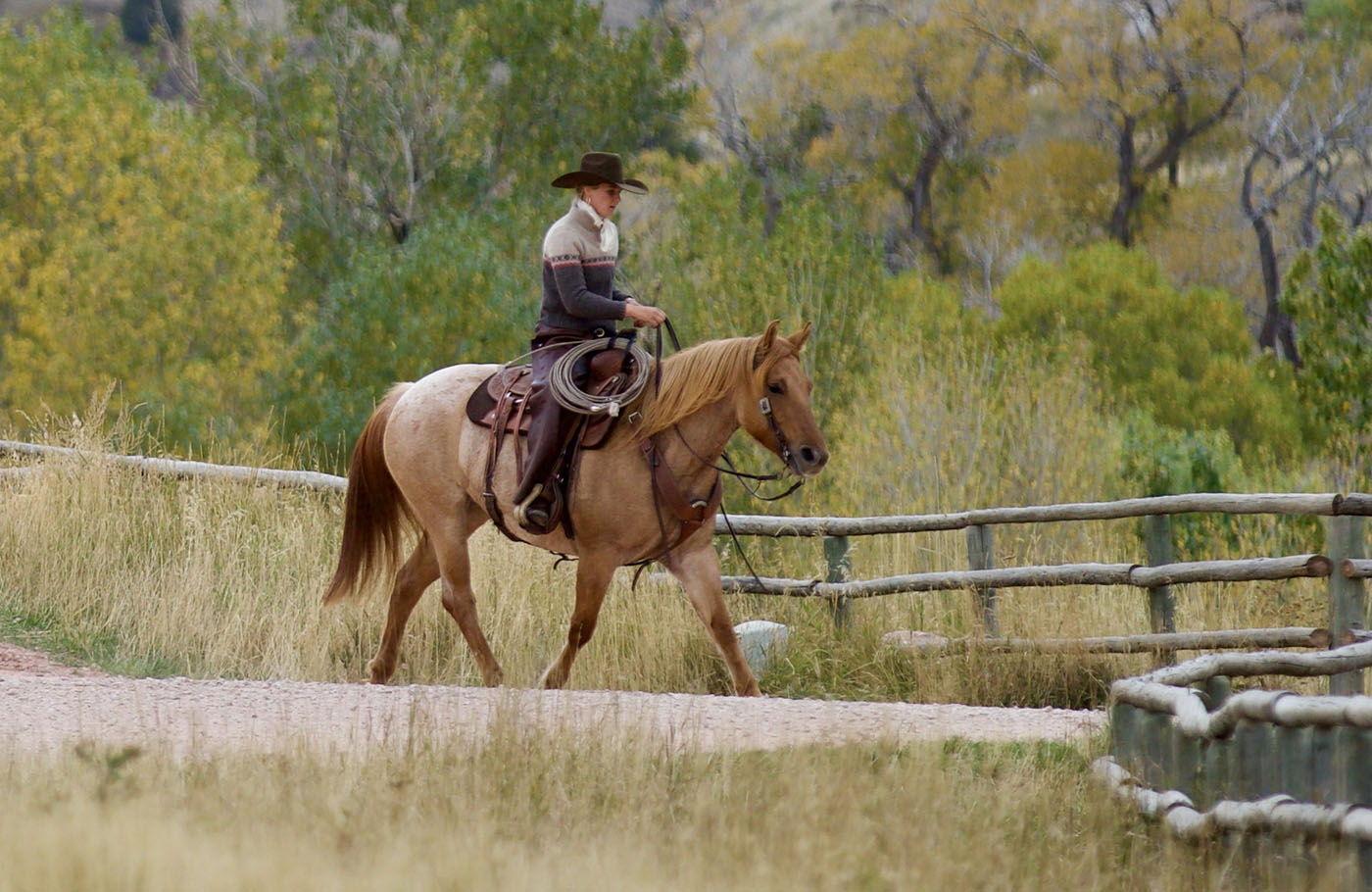 If you are looking for a surefooted and thoughtful trail horse, let us introduce you to this little trail champ! Cute as can be, sturdy-built and just the right height for most riders, Penny’s kind, quiet expressions are true to her personality. She has a sweetness that is easy to enjoy and has given confidence to many guests here at the ranch. Penny rides confidently alone or in a group, and has spent many hours packing supplies, camping in the mountains, moving cows, trail riding and participating in the state parade. Her natural gear is steady and easygoing, navigating wherever she’s needed without a fuss. Penny’s secret talent is how nicely she rides in the arena, too! Soft and easy on a big loose rein, she is a lot of fun to take through her finer paces. We think you’ll like her! Ridden by Grace Boerema. FMI [email protected] or 307-298-5030.
