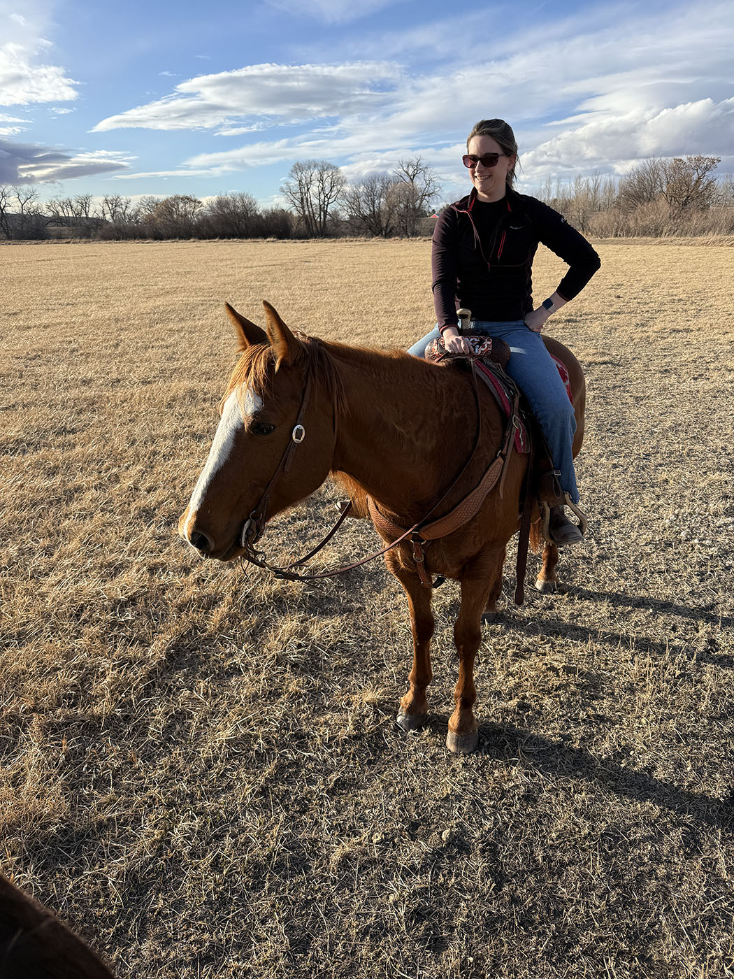 Rose is a gentle, fun, big-bodied girl with a steady, reliable mind and the kind of presence that makes you feel confident the minute you swing a leg over. She spent last summer on the Powderhorn as a trusted guest horse and the winter in Montana giving lessons, proving herself safe, seasoned, and dependable in a wide variety of settings with riders of different ages and abilities. She handles time off well and stays broke and gentle no matter how often she’s ridden, always coming back the same consistent mare. She has smooth, comfortable gaits with a nice trot you can sit all day and an easy, rolling lope that’s balanced and steady. She travels out willingly, covers ground with ease, and is happy to go wherever she’s pointed. On the trail, she’s confident and relaxed, sure-footed in rough country, and steady through obstacles. She enjoys getting out and seeing the countryside and will quietly take care of her rider from start to finish. Whether you’re looking for a trustworthy lesson mount, a confidence-building obstacle partner, a ranch guest horse, or the perfect trail companion, she’s the kind that shows up the same every day and truly takes care of her rider. Don’t let her slip past your notice! Ridden by Jessie Cloutier. FMI [email protected] or 307-298-5030.