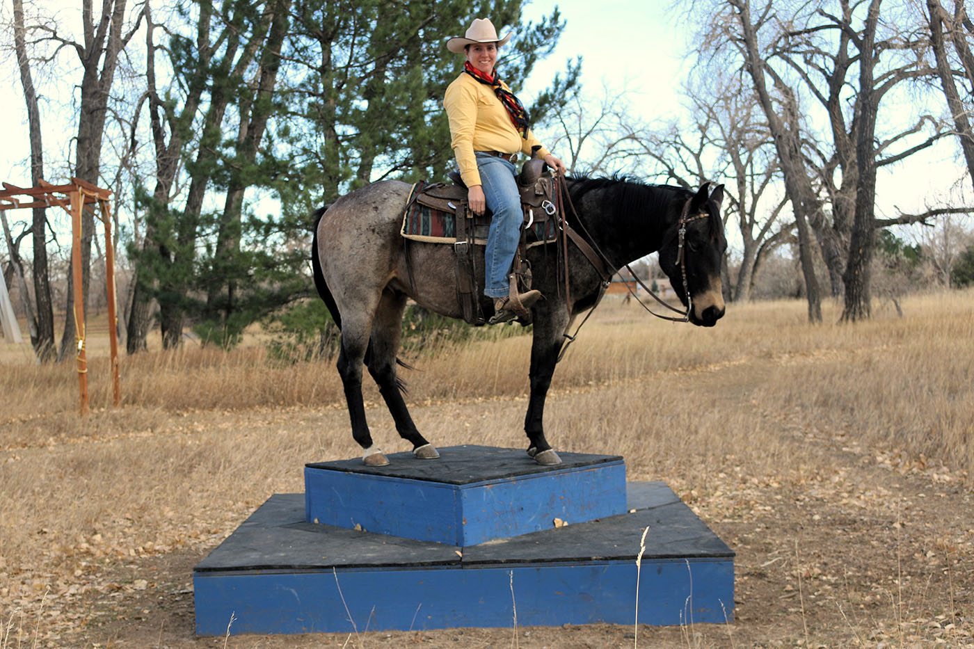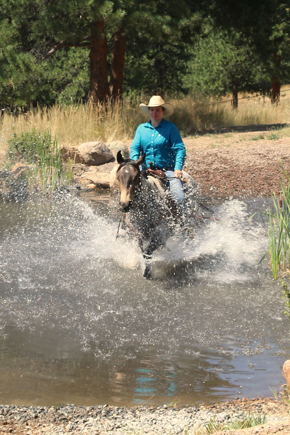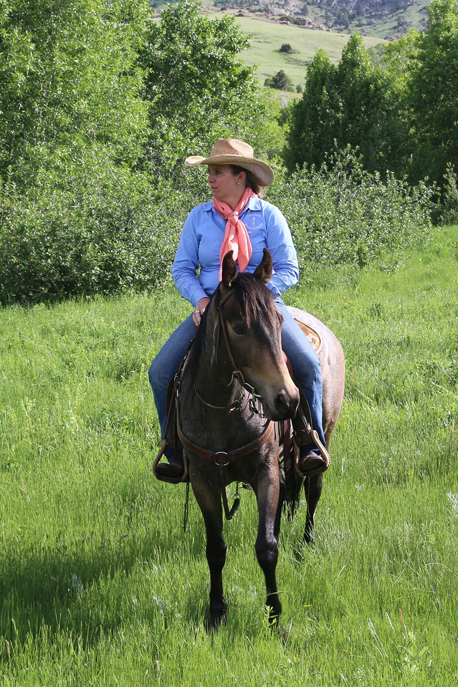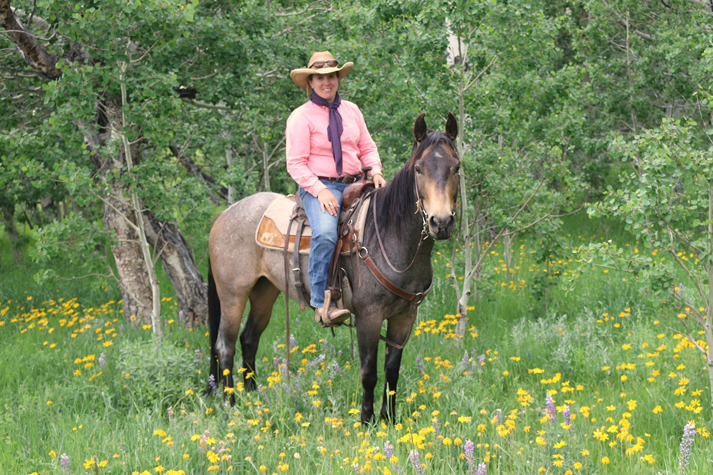 Huckleberry is not only eye-catching with his buckskin roan coloring, but he has been there and done that! He competed in skijoring in frigid temperatures. He has been trailered the length of eastern Wyoming, riding at the TA Ranch, and carrying mail in the Pony Express Re-Ride. He has conquered many obstacles, including tires, steps, teeter-totters, balance beams, and suspension and rolling bridges. He has packed elk meat and antlers out of the mountains. He has ridden miles of trails, experiencing bicyclists, deer, water crossings, dogs, and traffic, not to mention carrying flags, playing horse soccer, riding bareback, competing in gymkhanas, riding double, and jumping. He will lay his ears back when moving cows. He has very strong hooves. He is well-suited for a confident, experienced kid or intermediate adult. If you are looking for a horse to love, he’ll be your huckleberry! FMI, contact Carly at 303-668-3762 or [email protected].
