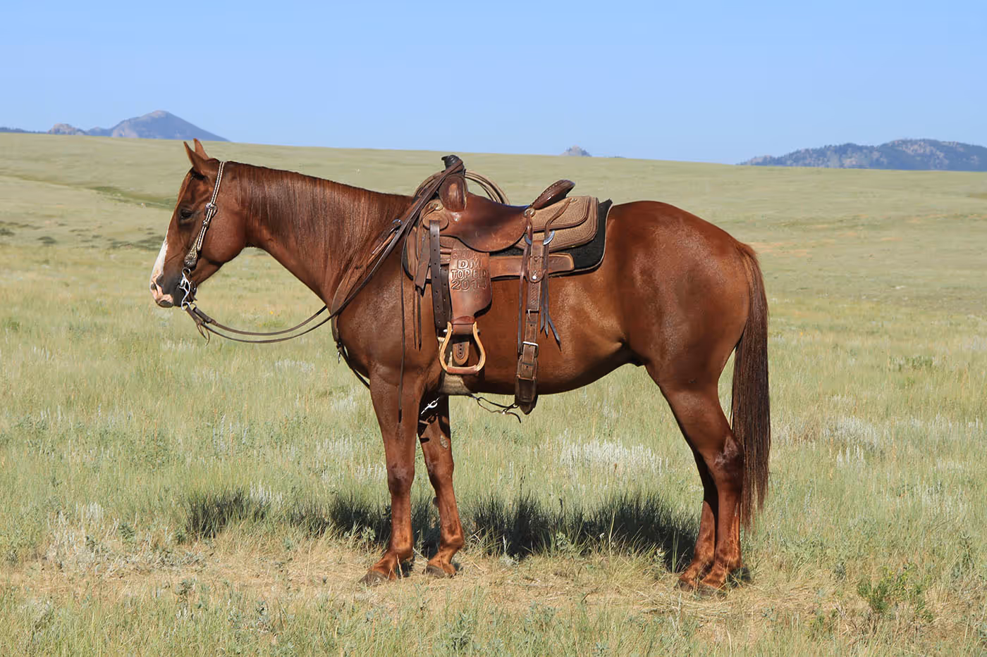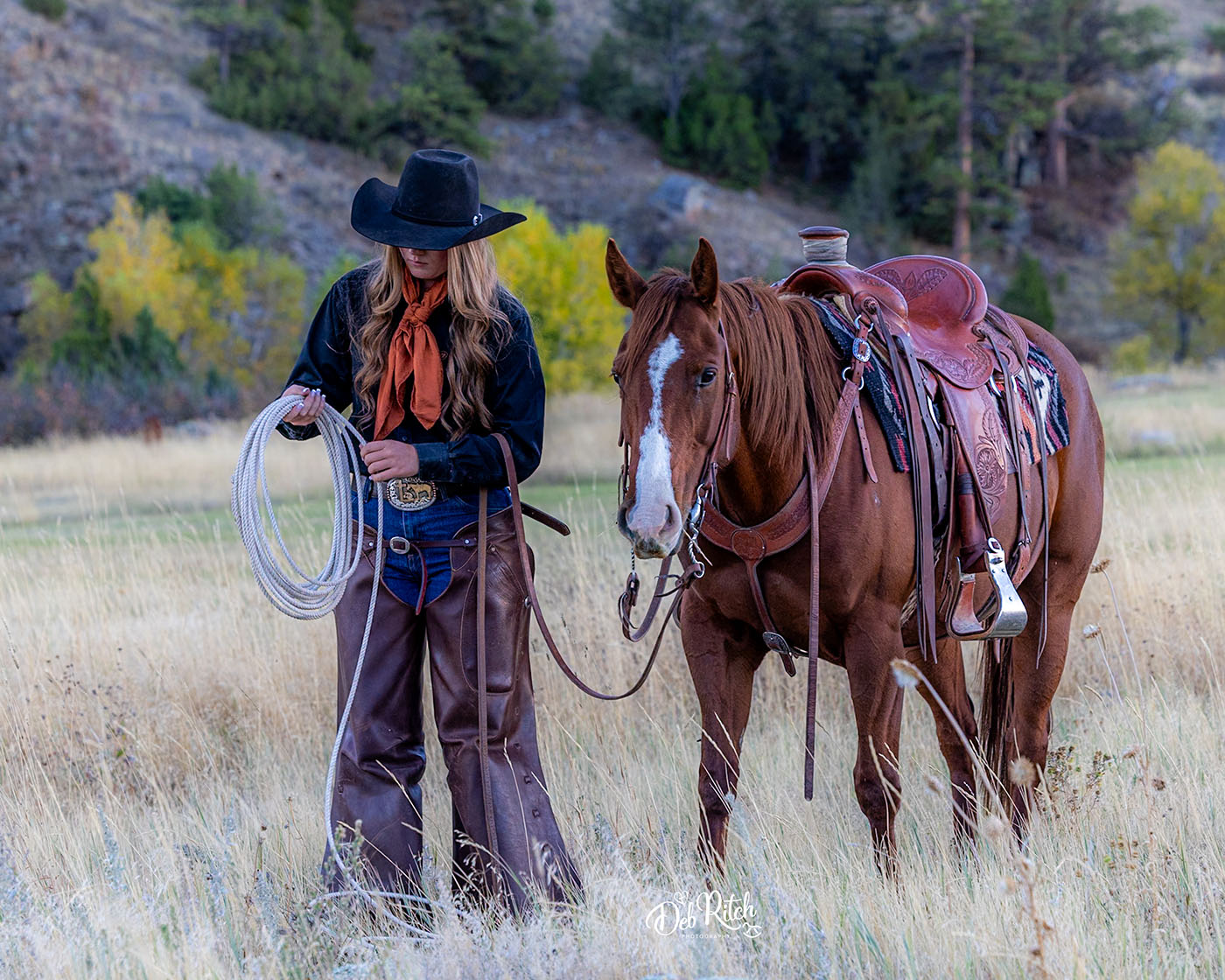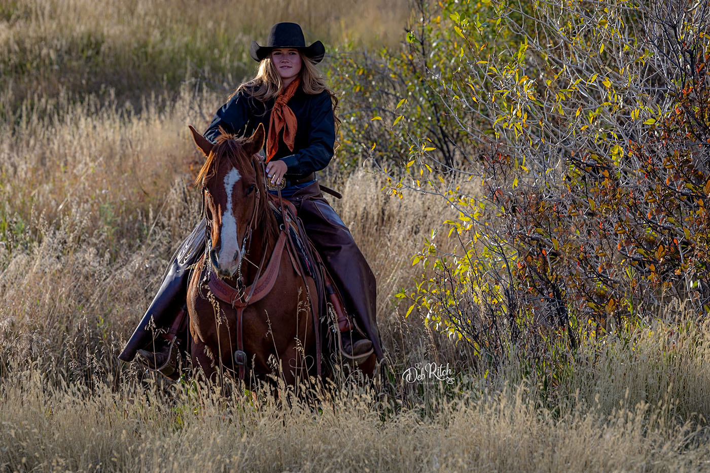This sweet gelding is known to meet you at the gate with a polite nicker and a willing attitude! Mega Scoot is confident in every sense of the word whether riding the trails alone or in a group, dragging the Christmas tree home, or weaving through traffic in town. He has a knack for taking things in stride and keeping a happy disposition! Experienced coworkers to guest trail riders have all brought him back to the barn saying “boy, he’s fun!” Mega Scoot has a very nice handle and can do anything I want riding bareback in a halter. He was a trusted choice to ride after my knee surgery and has talent that comes in handy when sorting cows and handling ranch tasks. He gives his all no matter where you take him and still wants to be your buddy at the end of the day! Ridden by Anna Frieden. FMI [email protected] or 307-298-5030.